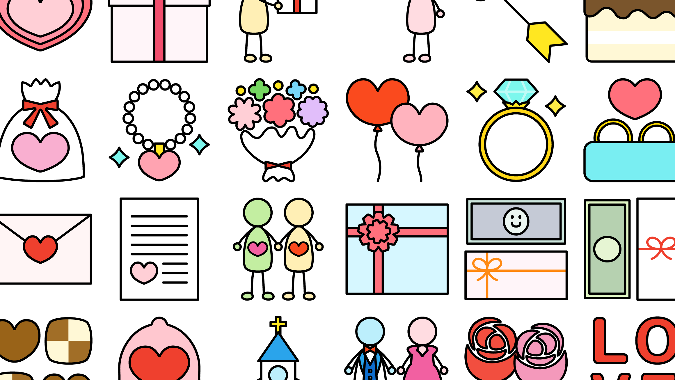 愛情表現のイラストセットを描きました